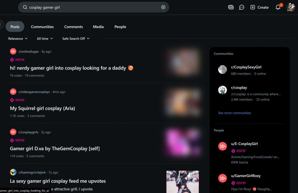 Use keyword-rich subreddit titles like r/cosplaygirls, r/fanslygirls, or r/gamergirls. Reddit posts often rank directly on Google.